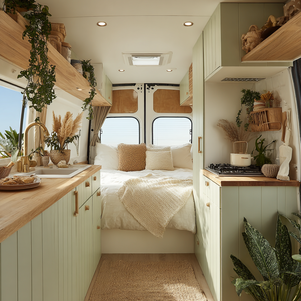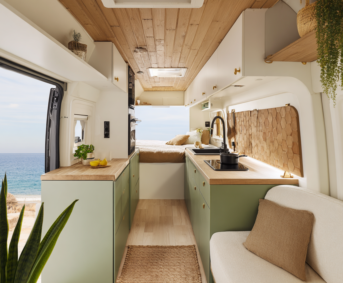 Van premium per spiriti liberi che non rinunciano allo stile: materiali naturali, colori caldi e design moderno per viaggiare con comfort e personalità.